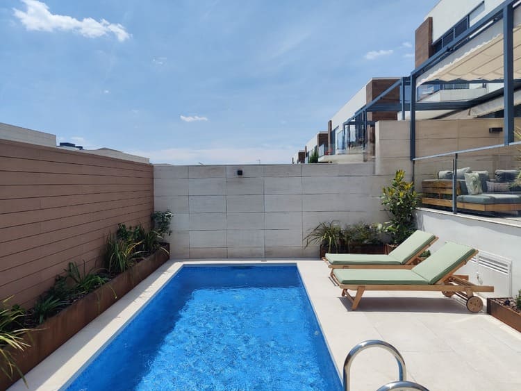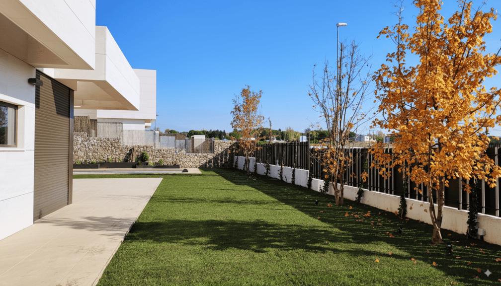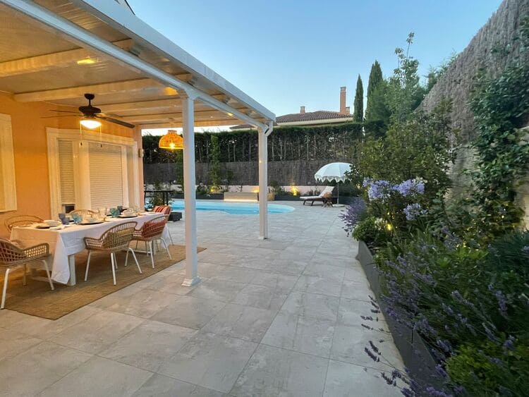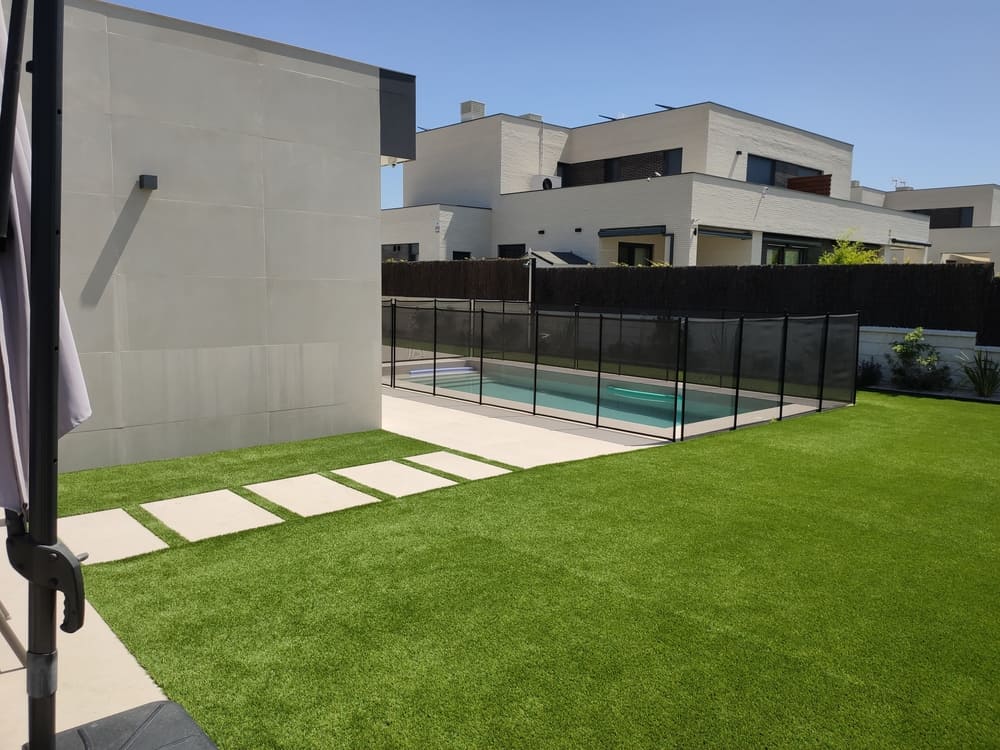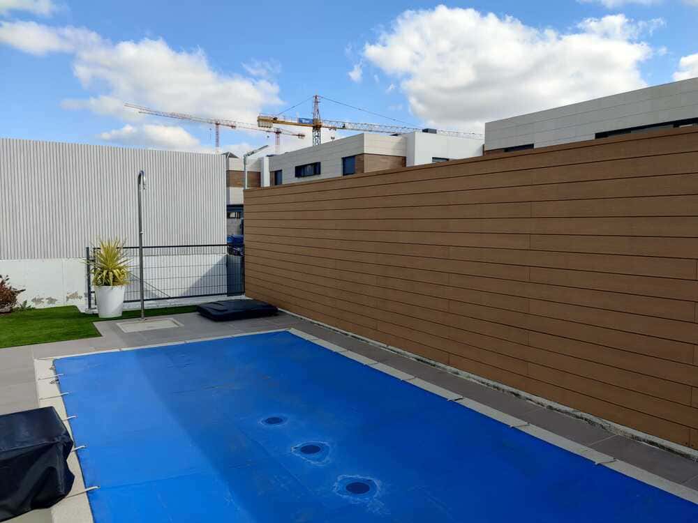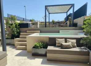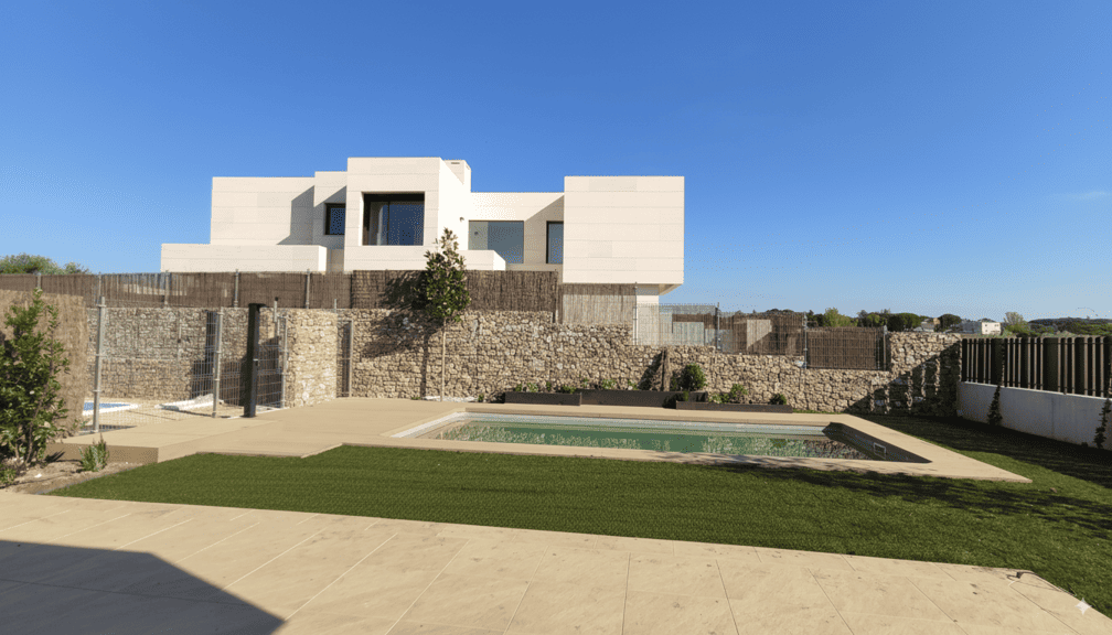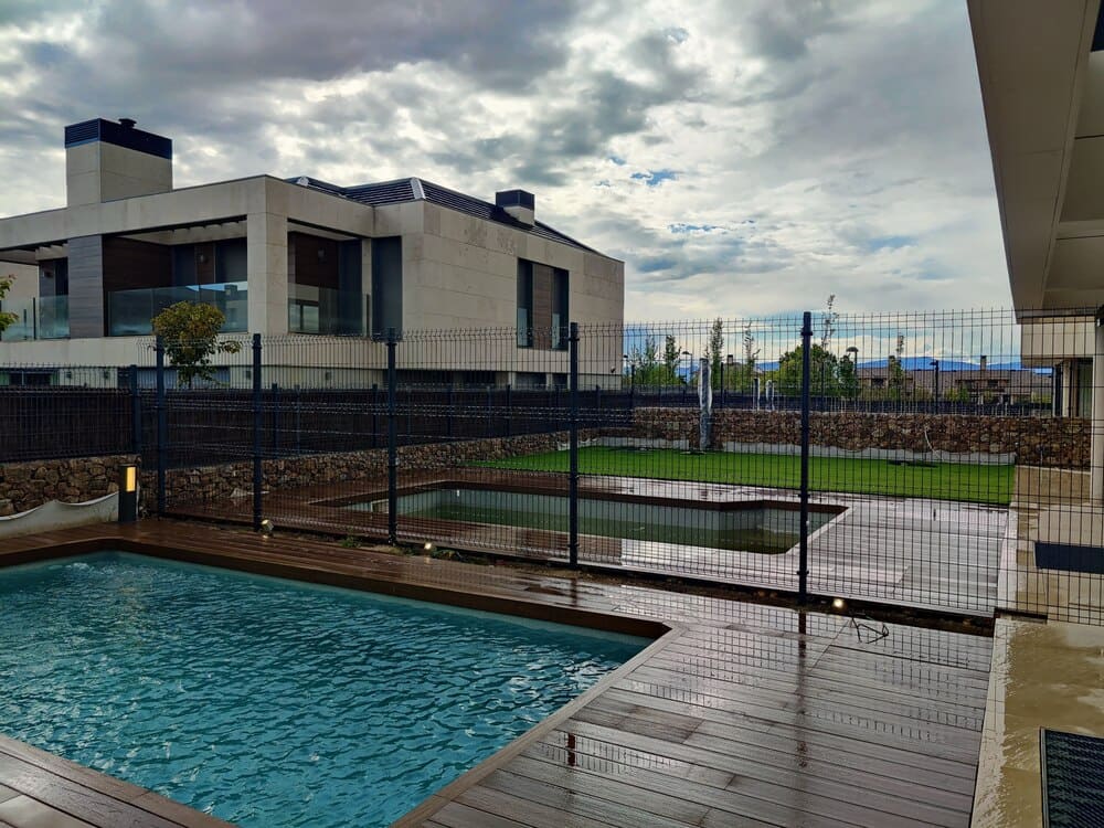 En este proyecto de jardinería en Majadahonda, nos encontramos con una piscina y pavimentos ya construidos. Nuestra intervención se centró en la decoración e integración del espacio existente. Utilizamos jardineras de acero corten de distintas alturas y brezo de ocultación con trepadoras para crear un ambiente más natural y acogedor. Para las verticales, instalamos una celosía de madera técnica que además de decorativa, actúa como respaldo de unos de los bancos y como continuación del salón de la vivienda. También diseñamos bancos de madera registrables para aprovechar mejor el espacio disponible y crear varios espacios donde sentarse por el jardín. El resultado final es un jardín en Majadahonda que combina elementos naturales y decorativos para crear un ambiente agradable y relajante.