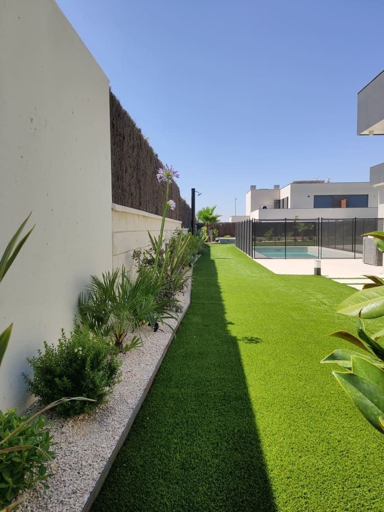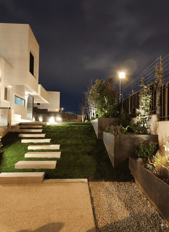 La iluminación es un elemento fundamental en cualquier diseño de jardín, por lo que instalamos proyectores LED que iluminan de manera indirecta los elementos más destacados del jardín. Además, añadimos gravas para decorar la zona y permitir el drenaje del agua, evitando problemas de acumulación y humedad.